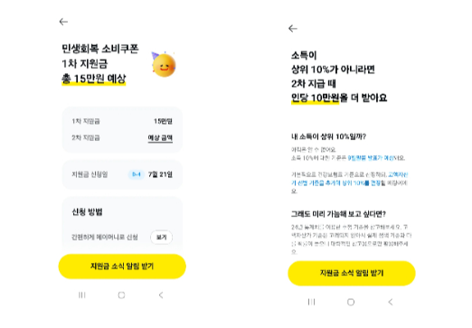 카카오톡에서 내 예상 지원금 확인하기